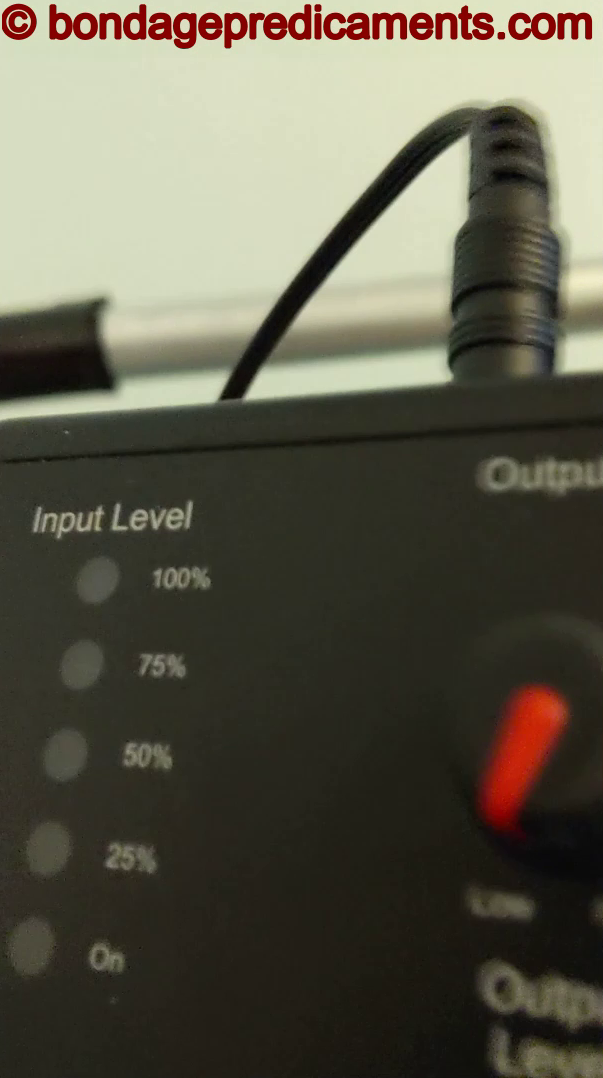 Phase 4: I turned on the Abox, a sound activated electro/e-stim box that I had previously wired to a silicone cock ring around his cock and balls. The box was strategically placed very close to his mouth, so every little sound he makes would translate into his cock and balls being shocked. Not only that, but even the fucking machine and vibrating wand caused the box to react a bit...and of course, that caused my sub to react. Then when he moans, his cock and balls only feel more electro stimulation as a result. It's a lose-lose predicament for him! (Or, is it a win-win? I suppose it depends on how you look at it, haha.)